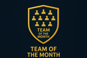 Team of the month is based not only on the teams on field performance, but also how the team have preformed off the field. This is then put together and a 1st, 2nd & 3rd are picked and are present with a trophy.